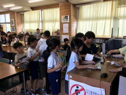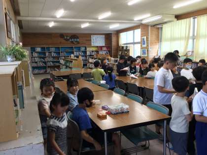 お昼の休み時間は図書室に訪れて、自分好みの本を借りたり、教室で友達とおしゃべりをしたりして、過ごしています.