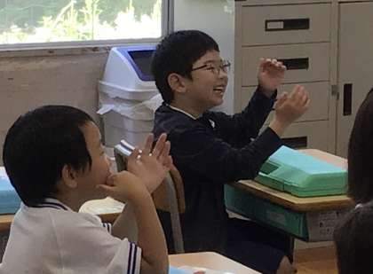 先生のリズム歌に合わせて、手拍子をしたり、歌を歌ったりして、夢中で楽しんでいました.