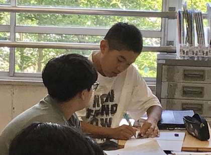 友達と相談OKだそうです.写真は一生懸命考えている様子です.