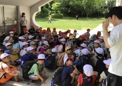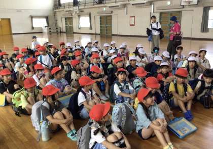 バスが到着する時間までしばらくあるので、体育館で涼んで待つことになりました.