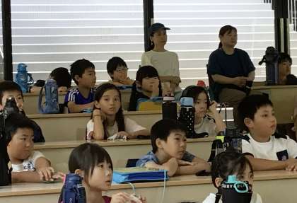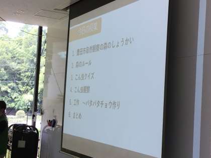 スライドを使って、自然観察の森のルールを教えてもらっています.