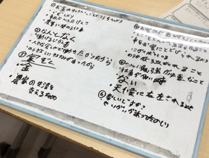 6年2組さん、インタビューを通して、「仕事にやりがい」「喜び」「達成感」を感じている方が多いことに気づいたみたいです。お金も必要だけど、お金だけじゃないんだなと、「働き甲斐のある仕事を選ぶって、楽しそうだな」と感じた子もいたようです。