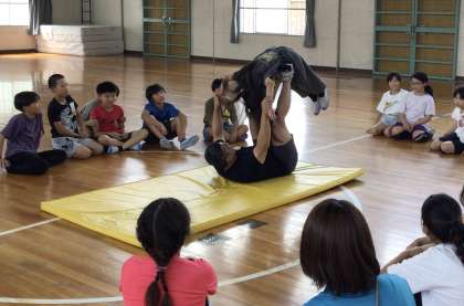 最初は男の子が「はい」と元気よく手をあげて、投げられていましたが、その様子を見て、女の子も手をあげて投げられ始めました.