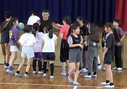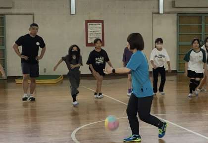 「ボールをよくみる」「走らない(歩く、大股はOK)」と、みんなで確認しました.