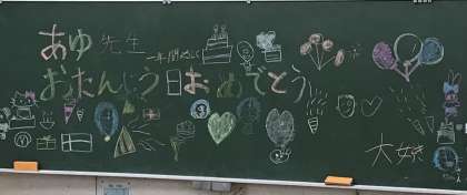 3年2組さん、今朝、サプライズで担任の先生の誕生日のお祝いをしたそうです.