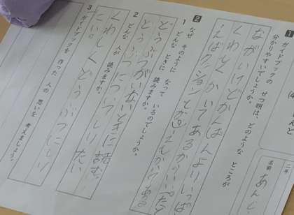 2年2組さん、国語の授業で「ガイドブック」の勉強中でした.