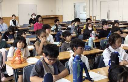 残り2班の子たちが所員の方の説明を聞きます.