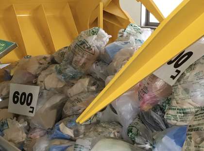 施設見学です 公開日 2025/06/27 更新日 2025/06/27 校長室から 正解は600袋でした. 次にゴミを捨てる場所の裏側を見せてもらいました. 豊田市のゴミ5日分は貯めることができるそうです.