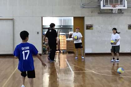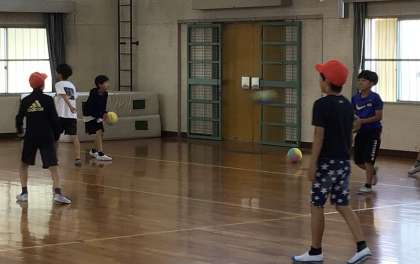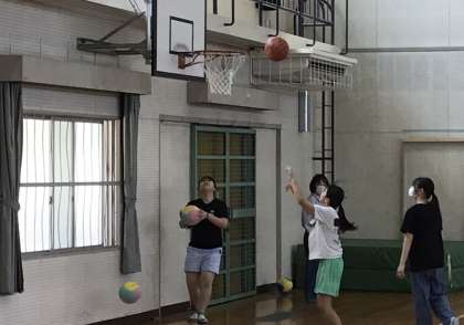 ボールを持って、バスケやキャッチボールを楽しんでいます.