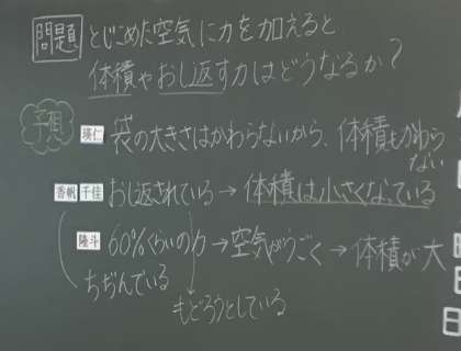 理科の授業なので、結果を予想して、みんなで共有します.