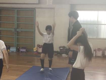1つのマットに3〜4人で練習していたので、適度に運動・休憩ができ、アドバイスや補助もできるので、効率がとても良さそうでした.