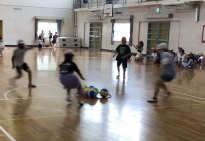 ボールを使ったレクを5年生の子たちが学年で行いました.