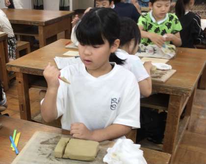 4年生 シーサー作りの様子です