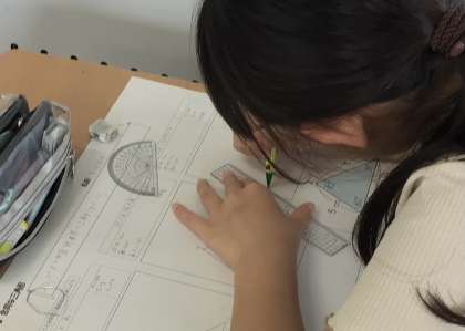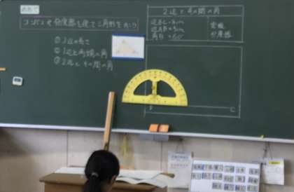 5年1組さん、算数の授業で「三角形の描き方」を勉強中でした。