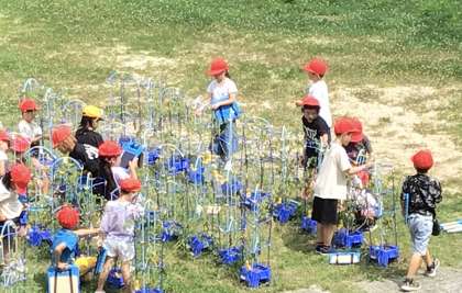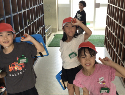 2年1組さん、5時間目はトマトの収穫で外へ行きました。