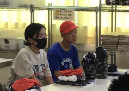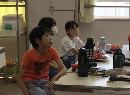 2組の子たち、先生の話を真剣に聞いております。