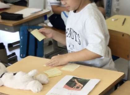 机の上に付箋がいっぱい置かれている子がいました。