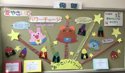 夏野菜でパワーチャージしよう!ということで、ミニトマトやトウモロコシの問題が掲示されていました。