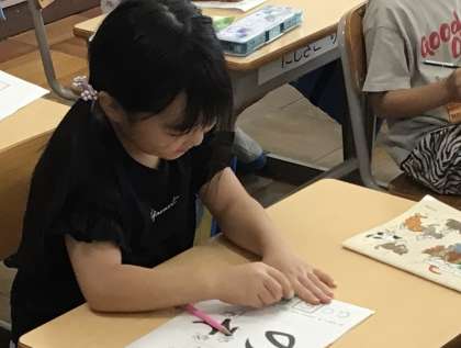 先生からも「◯◯さんの列の子、みんな書く姿勢がいいね」「◯◯くんの字、上手です」と机の周囲を回りながらいっぱい褒められていました。