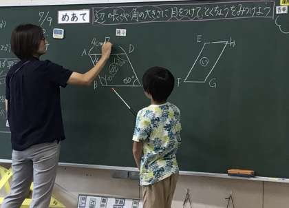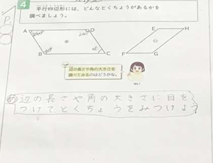 4年生、1組さんも2組さんも「平行四辺形」を勉強していました。