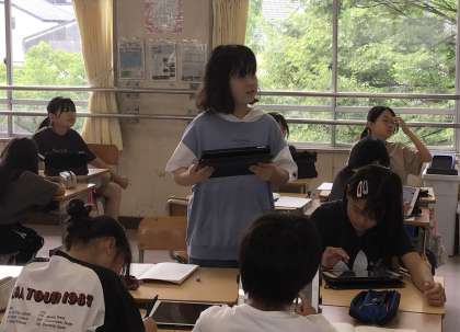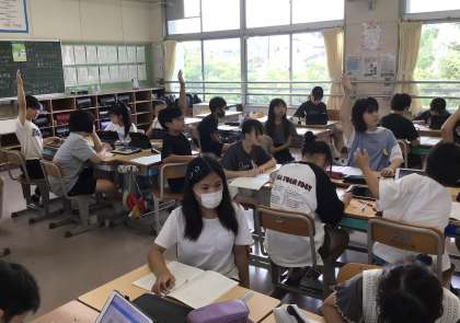 5年1組さん、社会の授業でお米について調べ学習を進め、今日は発表をしていました。