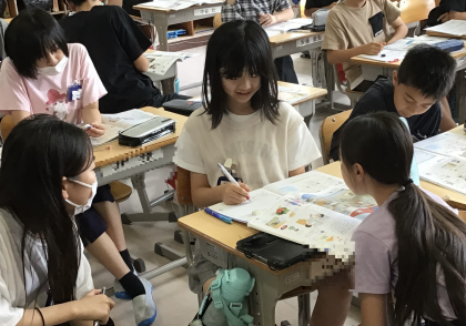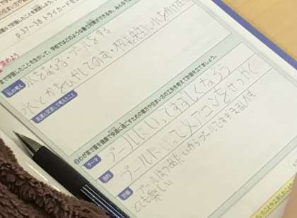 6年1組さん、家庭科の授業で夏休みの過ごし方を考えていました。