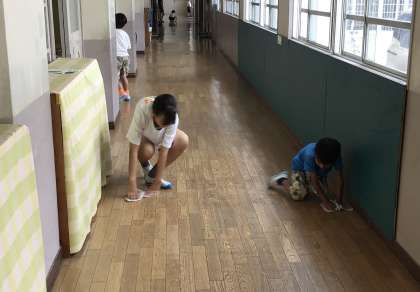 昇降口と廊下の掃除です。