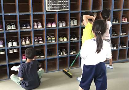 昇降口の1年生掃除の子たちも、慣れたもので自分の仕事をテキパキと行っていました。