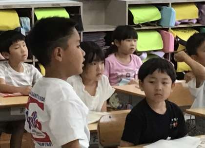 実際に、プールや体操で感じたことを発表して、練習していました。