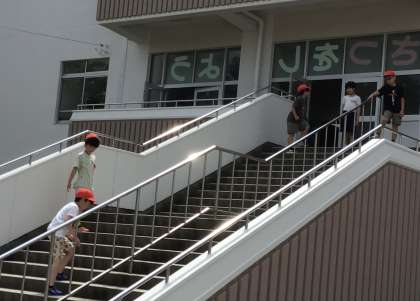階段では「パイナップル」と言って、じゃんけんを行う子たちもいました。