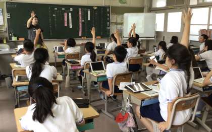 2組の子たち、いつ授業を見に行っても、よく手が挙がるし、手の挙げ方が綺麗です。