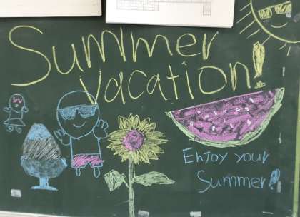 背面黒板には誰かが「夏休み」を迎える絵を描いてくれていました。