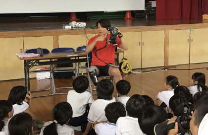 スポーツ用の義足だけでピョンピョン飛び跳ねてみせてくれました。