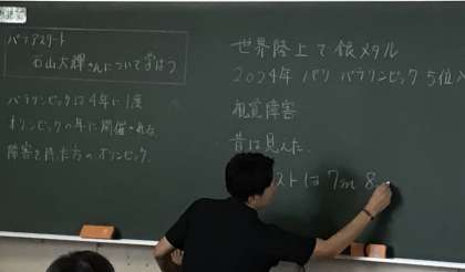 5年1組さんでは動画を見ながら、この後、お話をしてくださる石山さんのことを学んでいました。