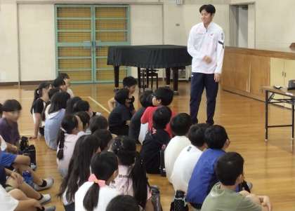 6時間目は5年生のみんなが石山 大輝選手のお話を聞きました。