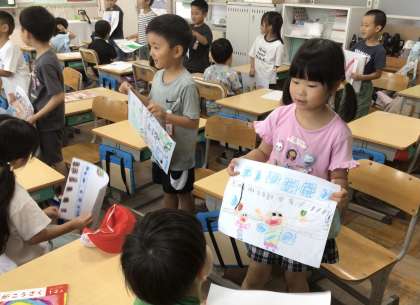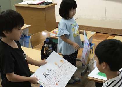 説明を聞いた子は質問や感想を言います。 話し終わったペアから入れ替わっていました。