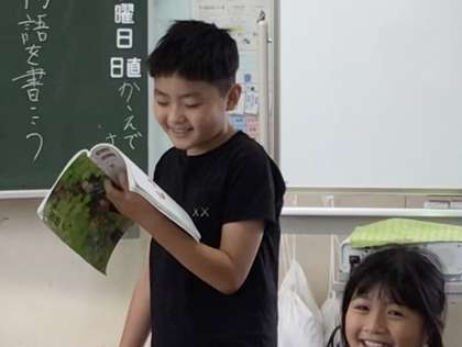 代表の子が指名されました。1行読むと、周りの子が続いて読み始めました。