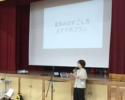 夏休み前の集会では、養護教諭の先生からもお話がありました。