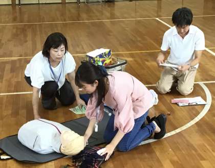 状況は体育館でアレルギーからアナフィラキシーショックなどが起こり、意識を失うという想定です。