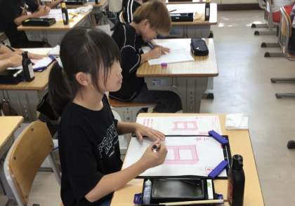 3年2組さん、書写の授業で「日」を筆で書いていました。