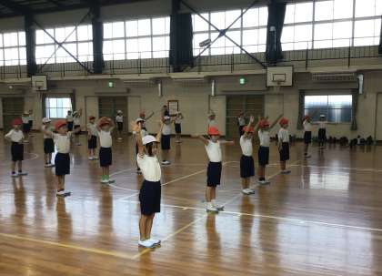 3年生、体育館で体育の授業です。