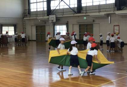 みんなで体操をした後、マットや跳び箱を運んで、活動の準備をしていました。