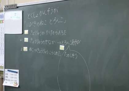 2年生 読書感想画 公開日 2025/09/03 更新日 2025/09/03 校長室から 2年2組さん、読書感想画を書き始めるにあたって、みんなで意見交流をしていました。 感想画で書く本の題名は「11ぴきのねこ どろんこ」です。