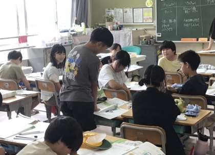 先生が「9月3日、9と3を足した番号の子」「朝ごはん、お米を食べてきた子?(挙手をして、その人数の番号の子が発表する)」というようにランダムに当てていたので、みんなドキドキしながら他の子の話を聞いていました.
