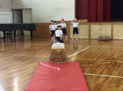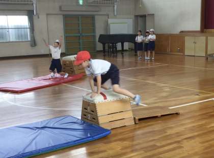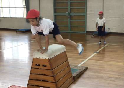 3年1組さん、体育館で跳び箱の練習中です.