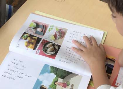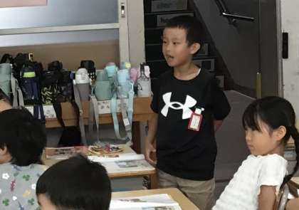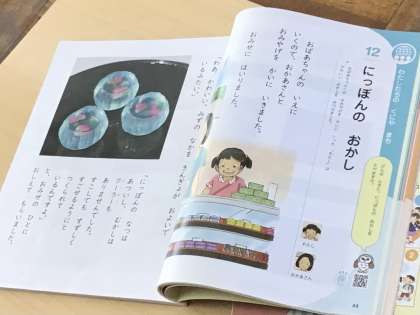 1年1組さん、道徳の授業で「にっぽんのおかし」を勉強していました.