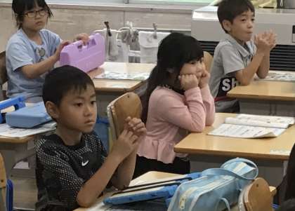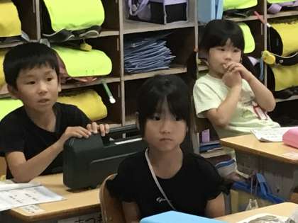 1年1組さん、音楽の授業で「ことばでリズム」の勉強中でした。