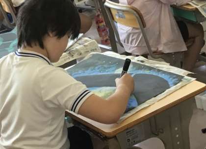 5年2組さん、読書感想画を作成中でした。