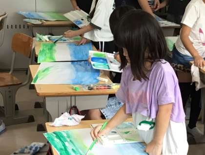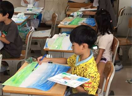 1・2時間目、2年生は両クラスともに読書感想画に取り組んでいました。