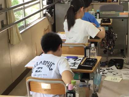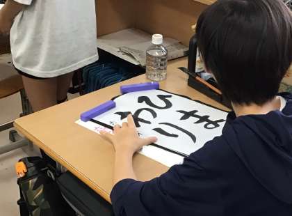 6年2組さん、書写の授業で「ひまわり」という平仮名を書いていました。
